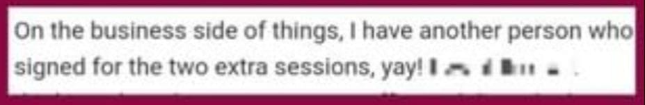 I feel like I have a business. I have a clear target client. I have a clearer communication strategy and I feel confident about charging for what I do!