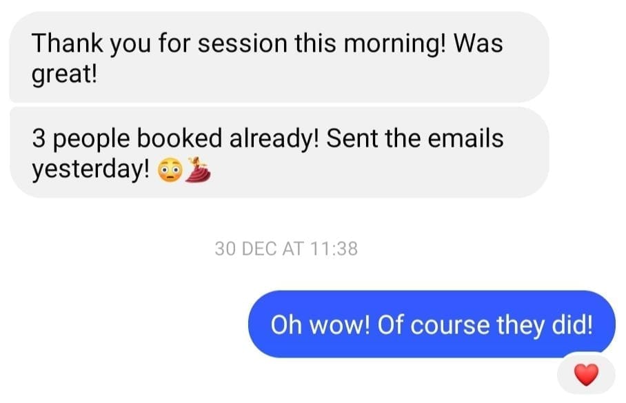 I feel way more confident about everything in my business - I have clarity on my offer, my pricing, my soul client, but I also feel more confident about myself as a CEO and as a coach. The mindset work we've done during our sessions were a massive shift for me.