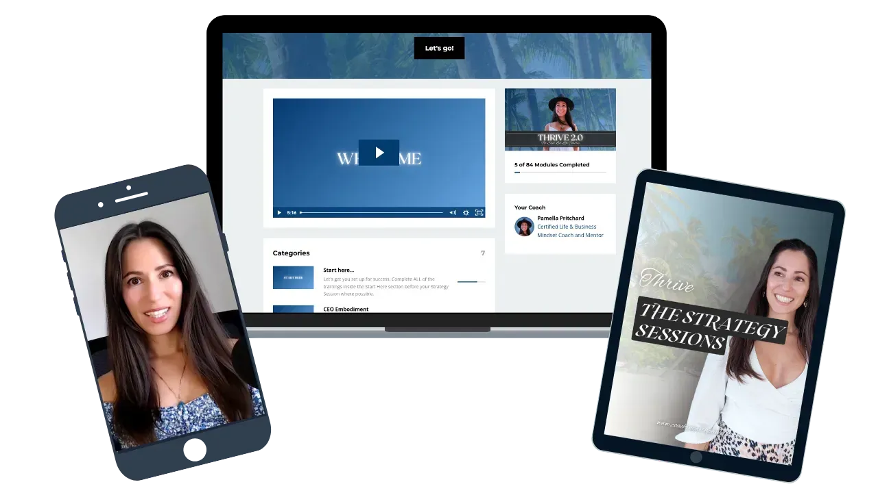 As soon as you join you get instant access to THRIVE 2.0 program hosted inside Kajabi. You will learn the essential and timeless business strategies that work no matter your niche, or chosen platforms.