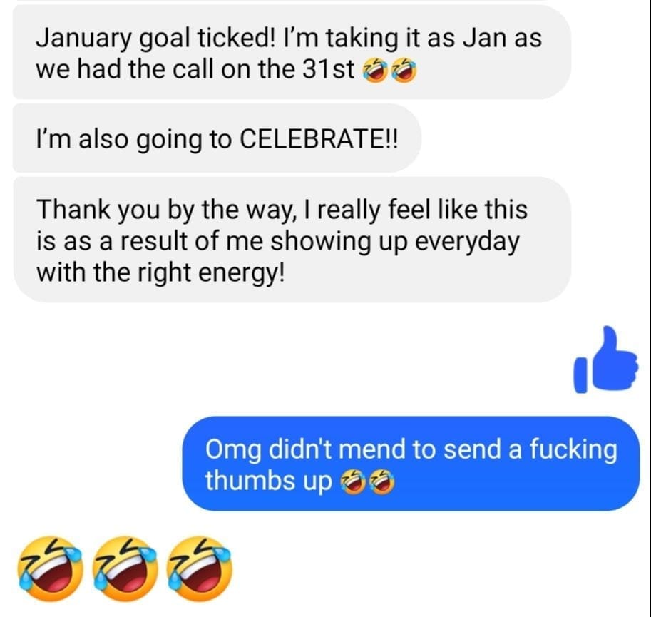 "Thanks to the work we've done together, I've managed to leave my 9to5 on my own terms"