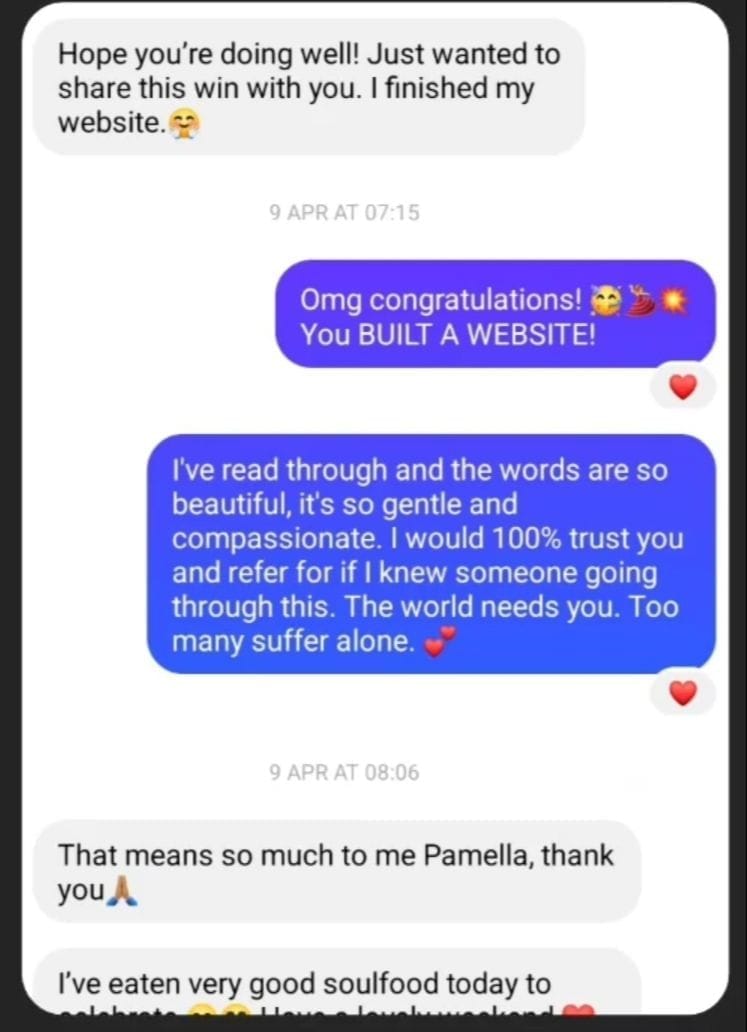 Then I came across Pamella's content and she spoke about all the things I was struggling and I was really reassured she had been there and I could definitely learn from her.