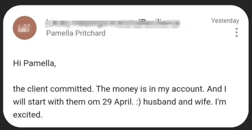 "Working with Pamella for the last six months has been absolutely transformative.