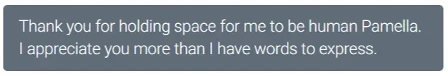 It felt very human to me. It felt very safe to my nervous system. It also felt very aligned to who I was and what I believed in as a human being. And that's when I knew that Pamella was someone that I wanted to work with.