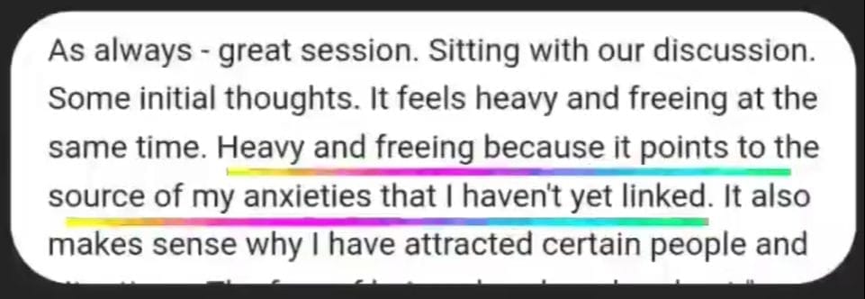 • Our work has shifted how I think about showing up - what it means to me, my clients, and the extended world.